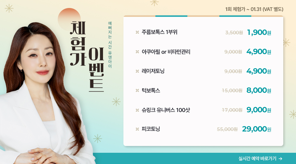 기본관리(아쿠아필/비타민관리/소노케어/크라이오 중 택1) 1회 체험가